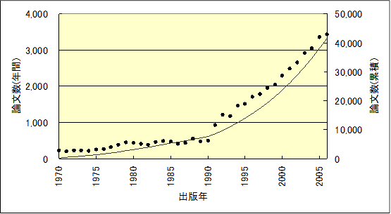 図1 年別論文数および累積論文数 学術知識の俯瞰的認識