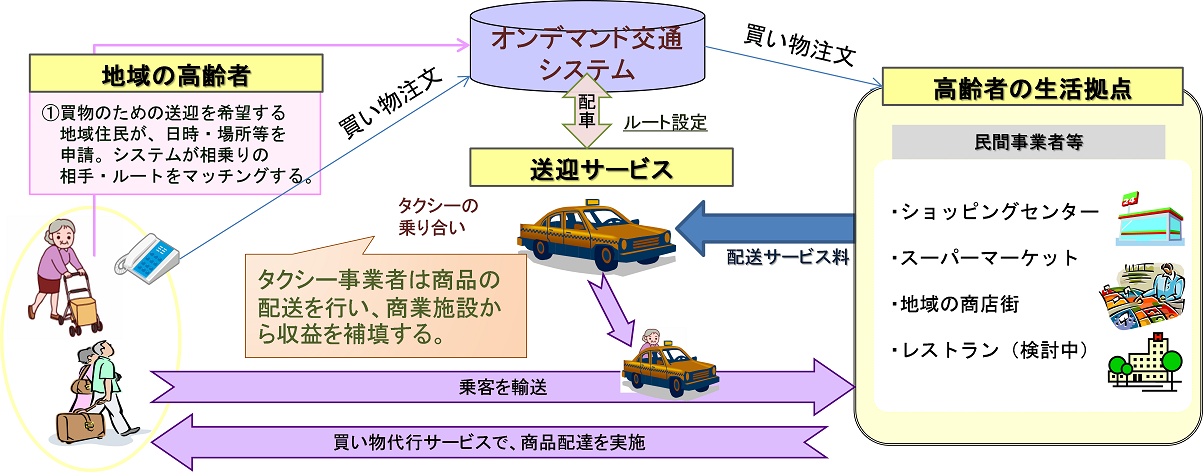 これら社会参加の場と高齢者を結びつける仕組みづくりの開発が急務といえる。オンデマンドシステムでは、交通機関という側面のほかに利用者個人との連絡手段を持つという利点がある。教育ファームへの参加とオンデマンドバスの利用をあわせて予約システムとして参加者を募ることも可能である。前述した医療との連携と同じである。民間企業がこの仕組みをインフラとして提供し、地元のボランティアやNPOがその仕組みを活用して、地域の高齢者に様々な社会参加を促すことでこの社会参加の取り組みは大きく展開でき、高齢者がいきがいを持ち続けることができるのである。