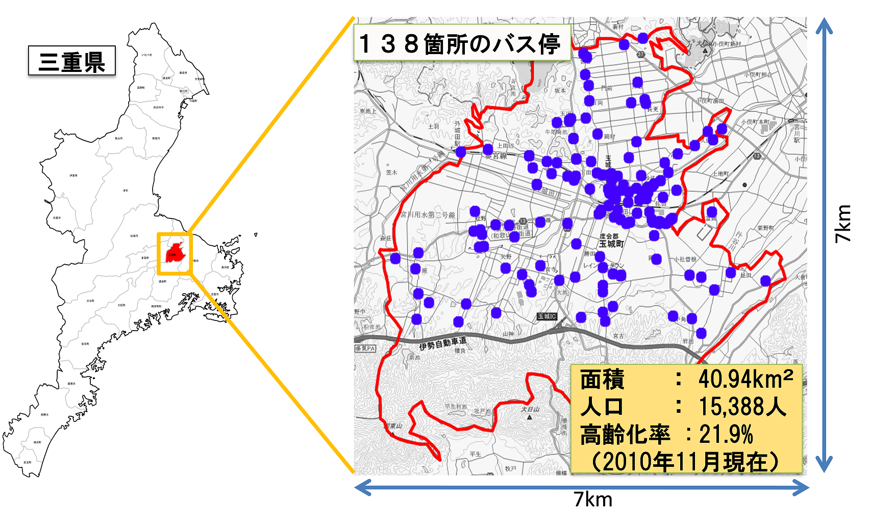 三重県玉城町での実運用例構築したシステムを様々な自治体で実証運行し、H23年10月末時点で8自治体にて本格長期運行が決定している。その中の1つである三重県玉城町の事例を示す。