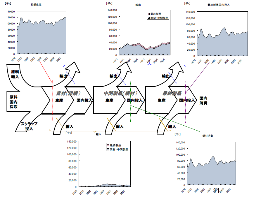 図11 日本における鉄の生産と国内投入量推移