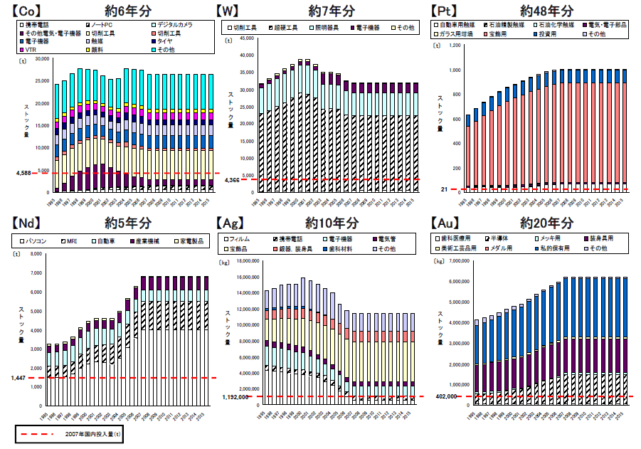 図4 レアメタルの市中ストック量